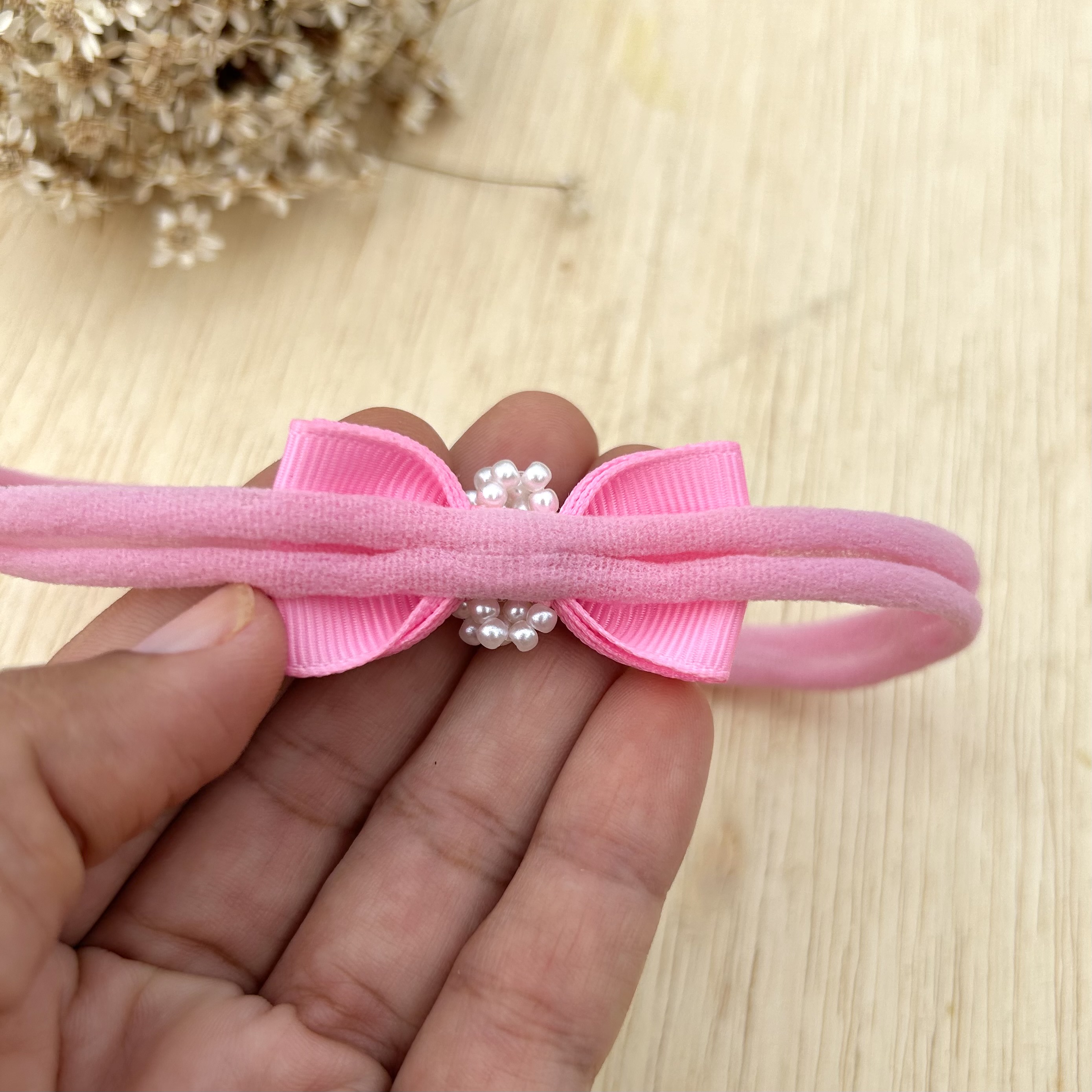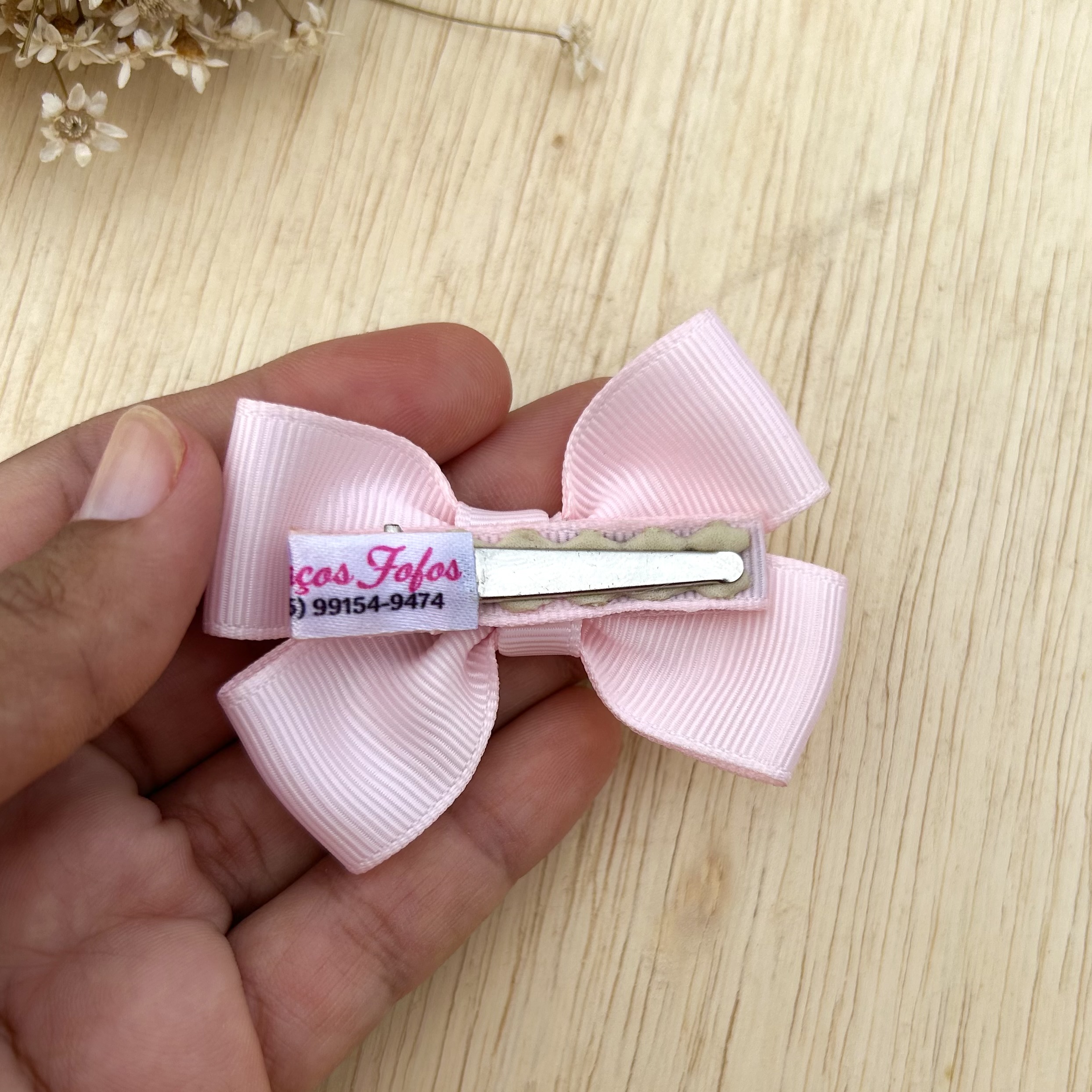 Indicada para crianças a partir de 2 anos que já tem bastante cabelo. Leva na parte interna uma borrachinha para fixar melhor, e a ponta facilita na hora de colocar o laço no cabelo.